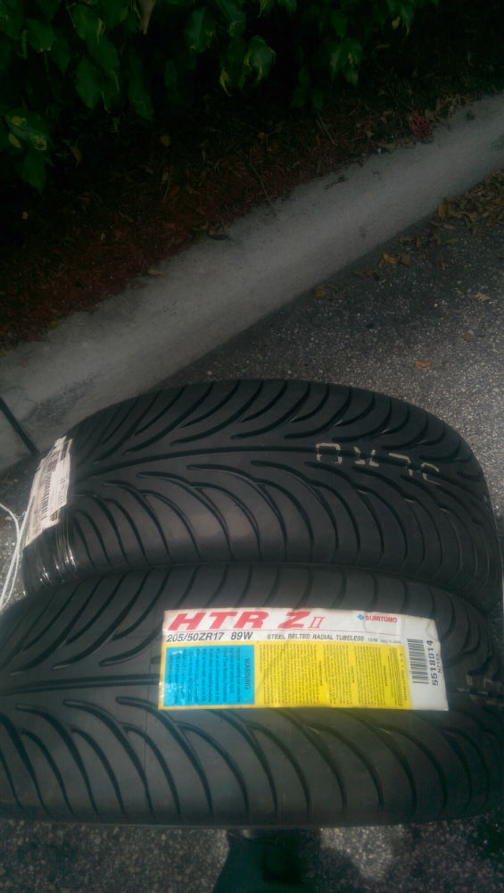 This listing is for two(2) Sumitomo HTR Z II tires in size 205/50ZR17. These tires were ordered to replace the two front tires on my vehicle after a blowout, but were never used because I ended up getting approved by Tires Plus for 4 new tires.