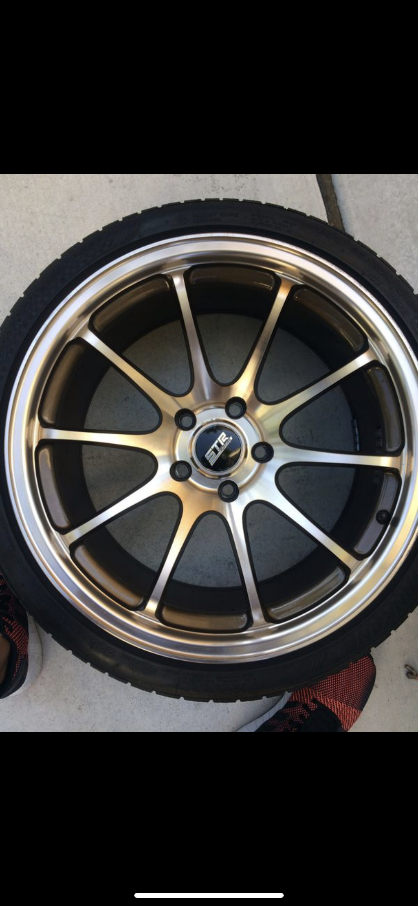 $1200 18” STR 901 18×9 +25 5×4.5 by pattern. Titanium Bronze. Alloy material w/ some curb rash on the rims. Still in good condition. Throwing in a extra STR rim as well. $400 New Nankang tires 225/40 R18 92H XL BSW. Total value $1900 Make me an offer.