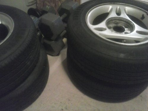 These four Tires came off a 95 mustang and they are the original stock Rims and Tires with almost or very close to full tread and missing the plastic center caps. Make me an offer. Call or text day or night to Dave at 1-517-315-6839.