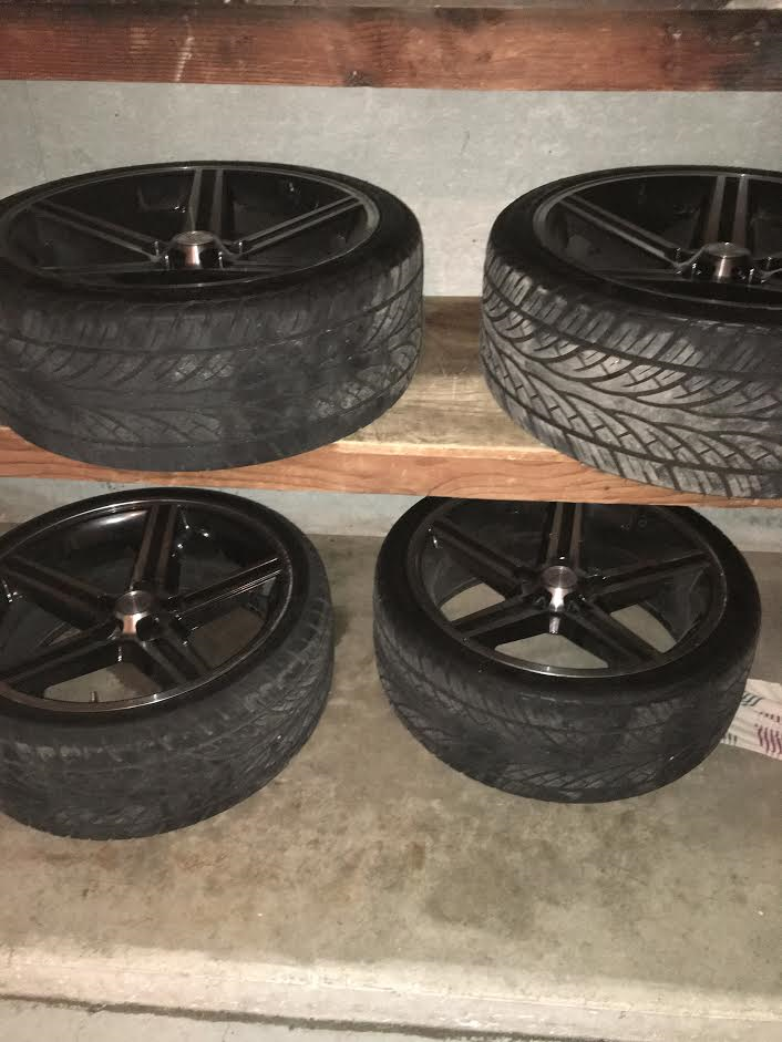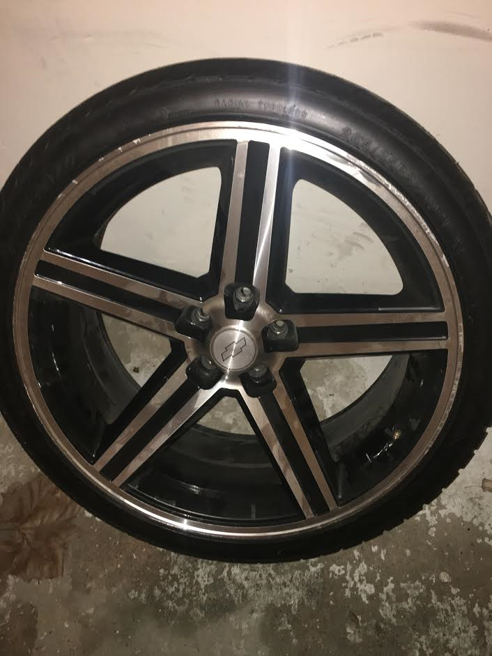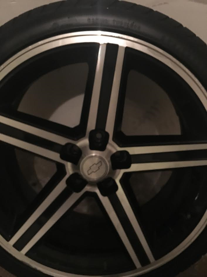 I have for sale all four 22″ Iroc Z Camaro retro rims with Lexani tires, wheel locks, and key included. Will fit on most Chevy/GM vehicles ((5 by 120 lug pattern)). Tires are a bit worn, from rubbing and one of the wheels has a slight crack in it causing a slow leak. The rims also have some minor curbing on them.