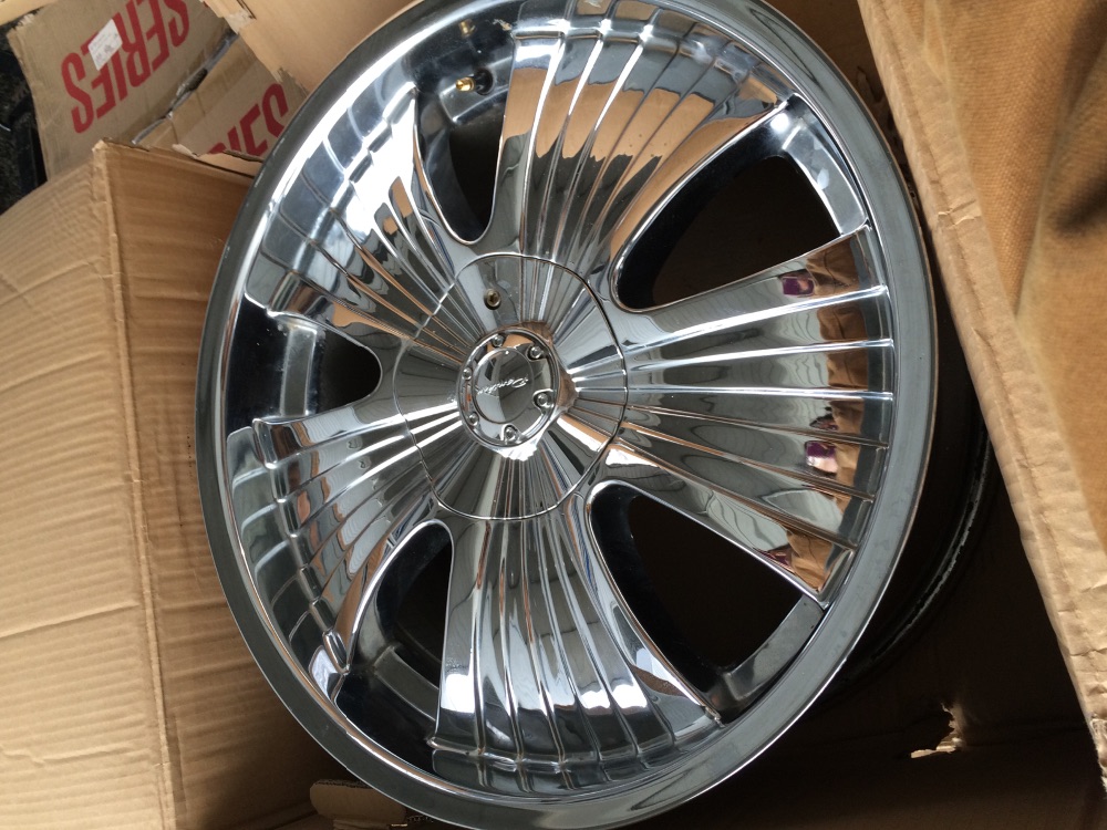 22′ luxury chrome rims $700 Virginia Report problemProcessing your request, Please wait....Offensive ContentInvalid OfferSpamOther× Home U.S.A Virginia 22′ luxury chrome rims This ad listing is expired. Photo Gallery 22' luxury chrome rims × Additional InfoAd TypeI Am OfferingNew/UsedUsedDiameter22CountryU.S.AState/ProvinceVirginiaCityLynchburgExcellent condition 22′ Panther rims. Very stylish and expensive. Price brand new would be $1250 Hmazur Listing Owner Member Since: July 22, 2015 Lynchburg Virginia Get Directions Sold Ads2x 245/40R18 97V Dunlop SP Sport Maxx GT 600A 7.5/32” Used Tires1x LIKE NEW 235/60R17 102H Goodyear Assurance Comfortred Touring 10.5/32” Used Tires1x 205/65R16 95H Kumho Solus TA31 6.5/32” Used Tire2x 285/45R20 112H Goodyear Eagle Sport All Season RunOnFlat 7.5/32” Used Tires1x 225/50R17 94V Goodyear Assurance Maxlife 8.5/32” Used Tire2020 ram 6 lug 20sMaxxis Razr Mt Tires (Full Set) LT295/60R20BRIDGESTONE BLIZZAK SNOW TIRESLike New Tires!Used Good Year Wrangler DuratracShare Ad