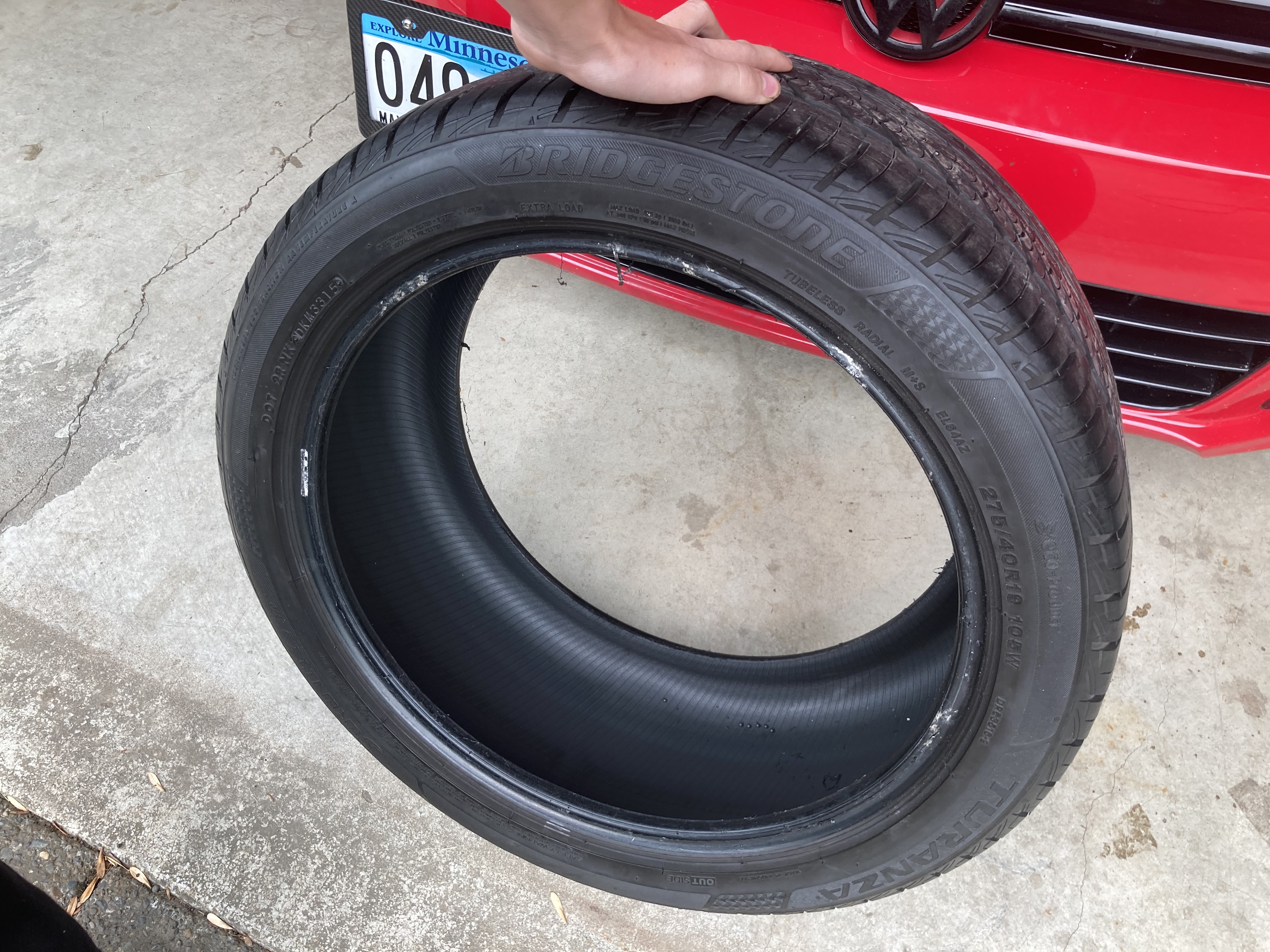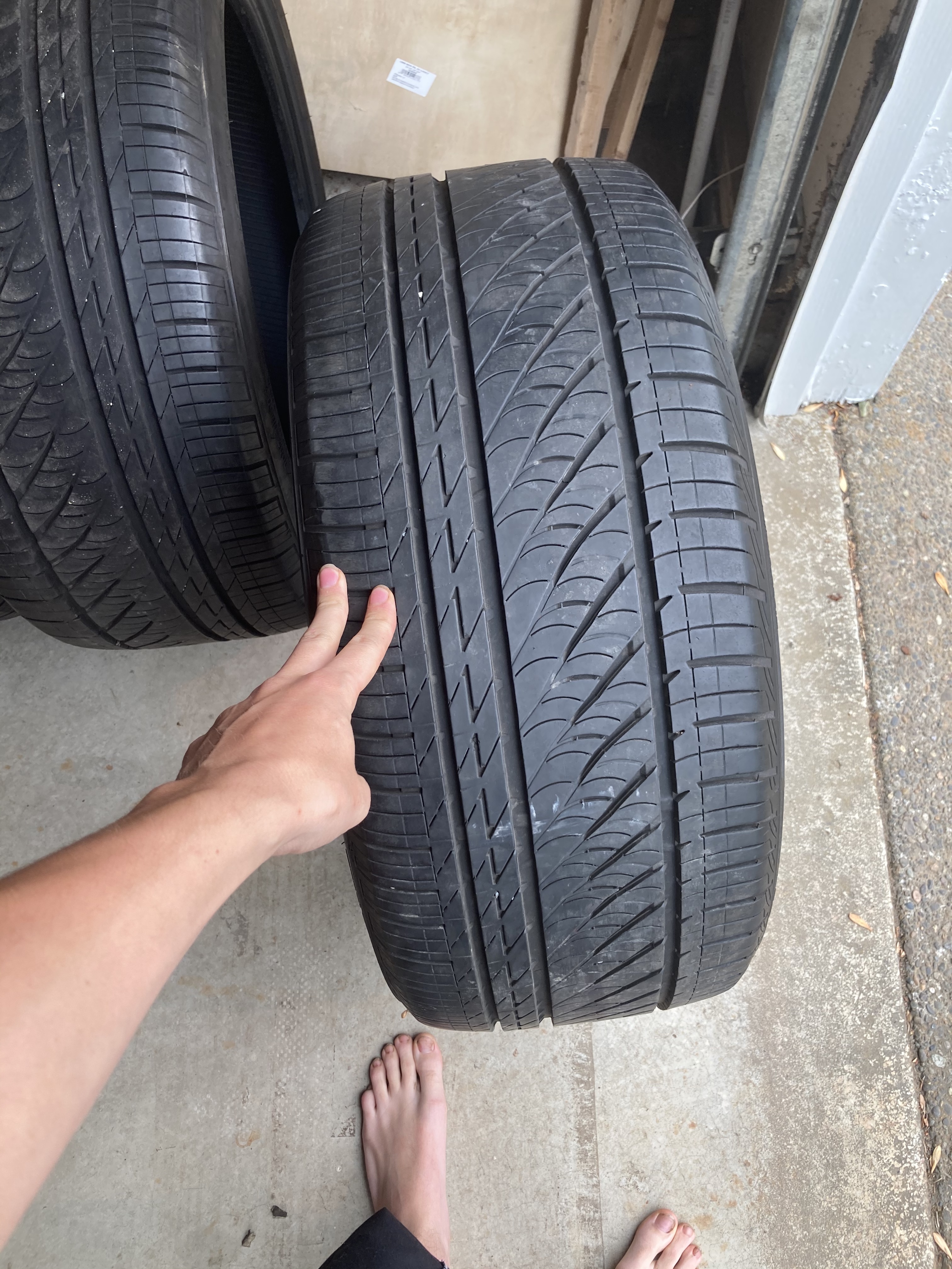 These tires came off a Bentley Continental Flying Spur. Car was driven from LA to Seattle and then got new tires and wheels.