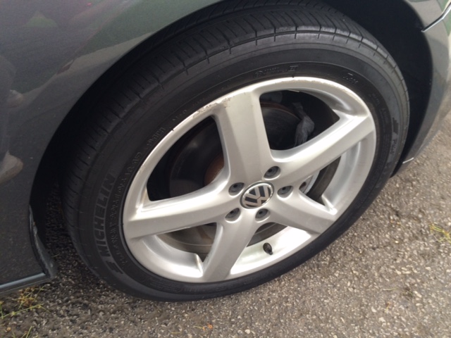 Comes with Michelin 225/45 R17 tires but they are old so I do not know if they are still good to go.