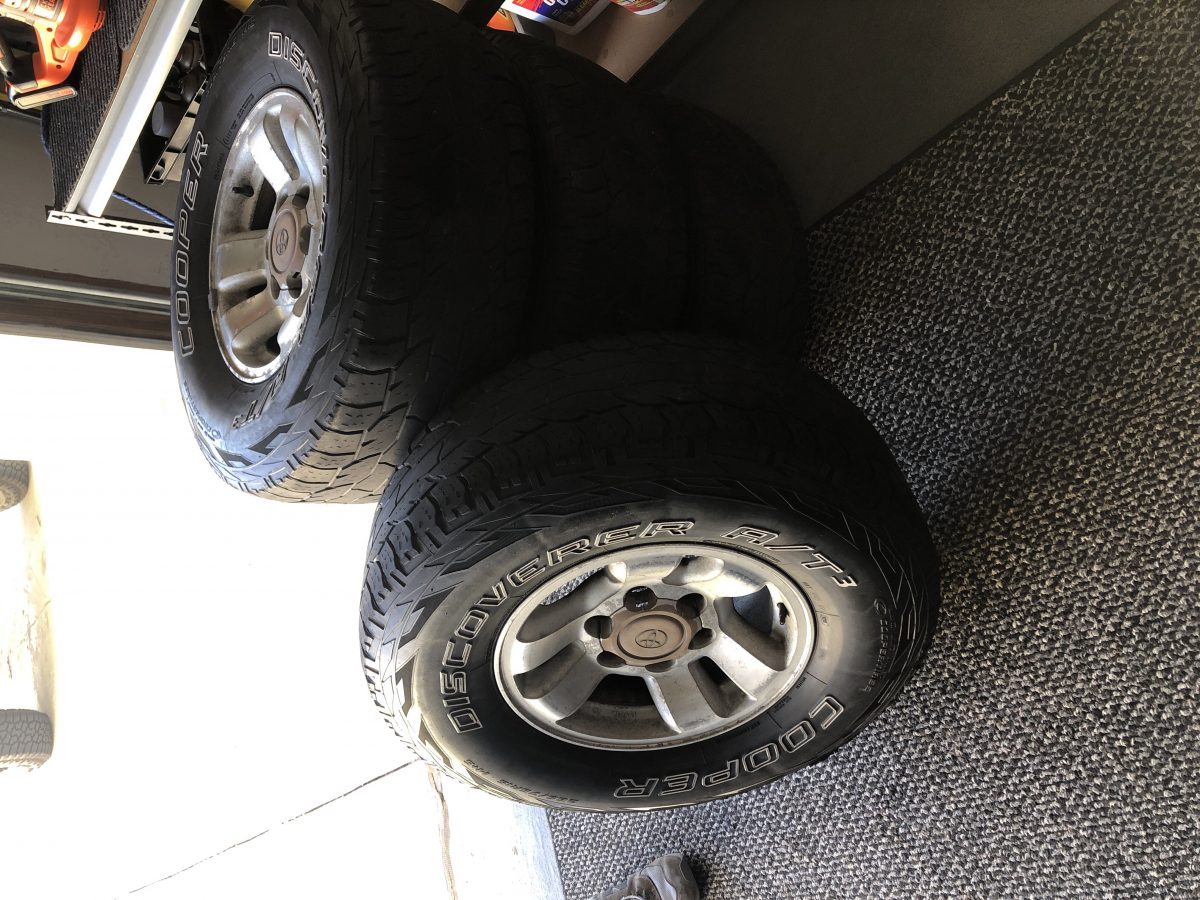 4 used tires and rims 30 a piece price is flexible have about 25% tread on tires are in good shape no holes or damage to side walls , rims are 2000 Tacoma Trd pro rims