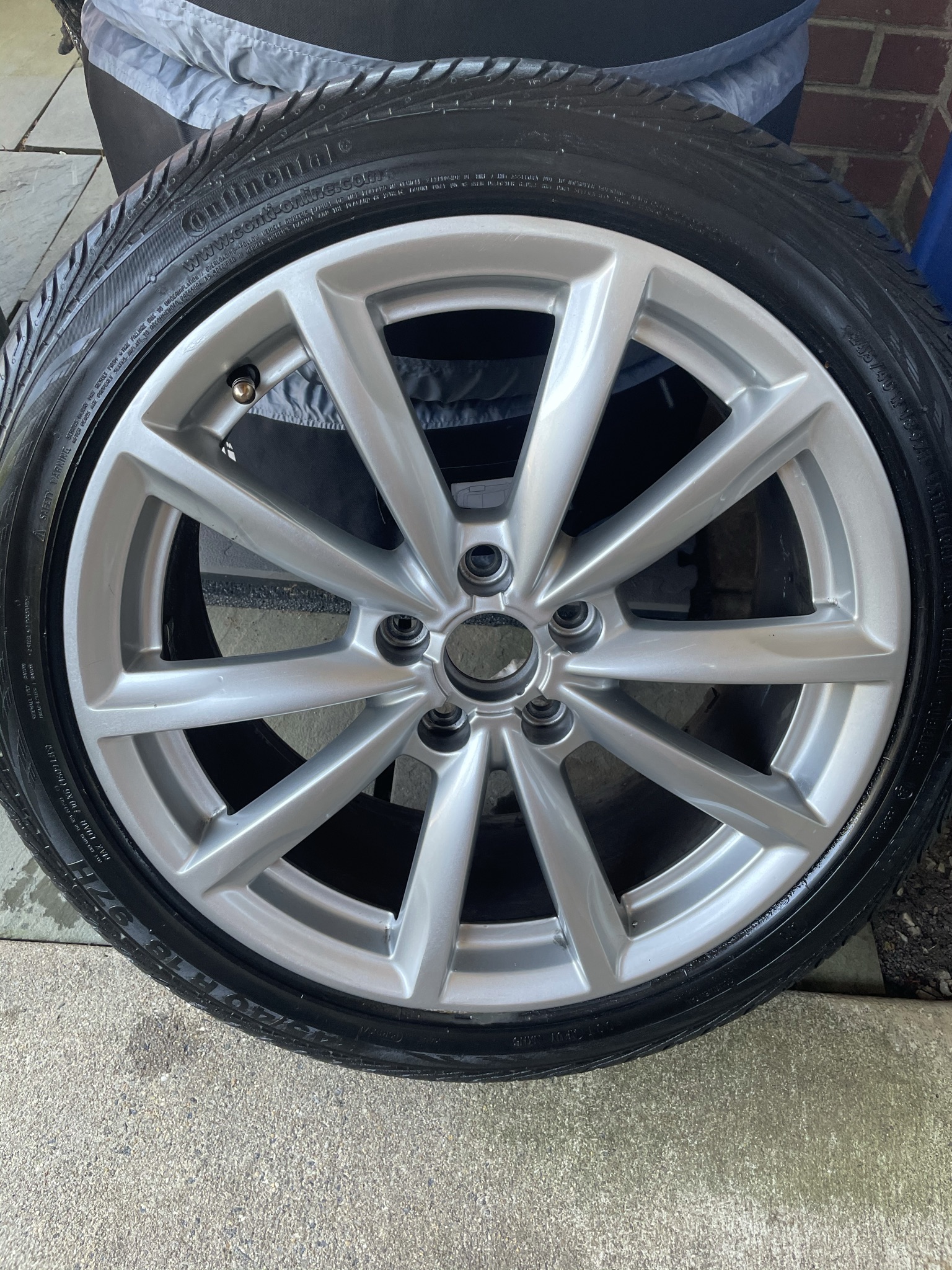 I purchased 20in wheels and tires and no longer need these. Tread is still very good – came new with the car and only have 6k miles on them. If you want the wheels/rims, you can have them too (OEM Audi 18×8, 112mm and 48mm offset)