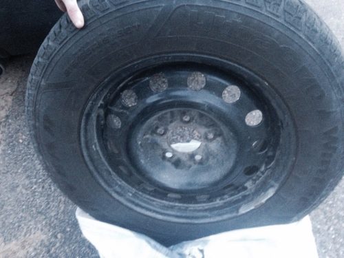 I am selling a set of mounted and balanced Goodyear ultra grip winter tires comes with their own set of lug nuts and locking lug. It’s a 5 lug rim. Used for the beginning of winter but we’re moving. Excellent tread.