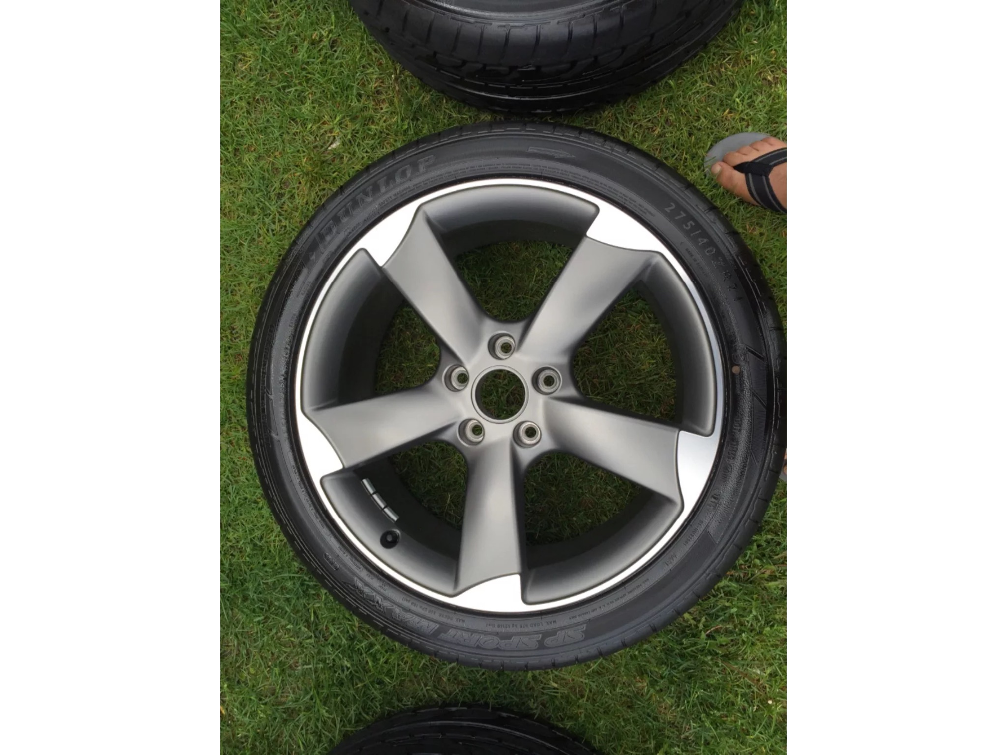 I have forsale my Genuine OEM Audi Q7 Sline 21″ titanium wheels I have all four wheels and tires on them one of them had scratche the tires had 1000 miles on they will fit all q7 2008-2015 center caps are not included