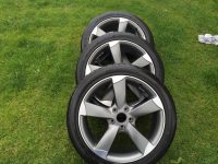 I have forsale my Genuine OEM Audi Q7 Sline 21″ titanium wheels I have all four wheels and tires on them one of them had scratche the tires had 1000 miles on they will fit all q7 2008-2015 center caps are not included