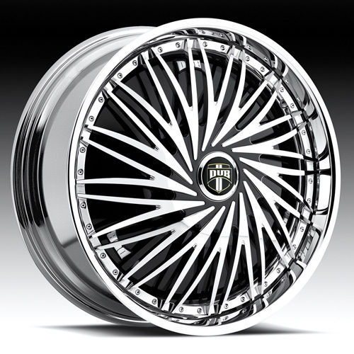Drama – SPINNER DUB Series Drama in Black Chrome Lip Style luxury wheel. Precisely built with computer controlled machinery, this Spinner wheel belongs to premium line of DUB wheels with great variety of color options available. Various areas of the wheel can be painted in custom colors to match your ride or create impressive accents to its style. DUB wheels are top-of-the-line products of MHT Luxury Alloys, well-known worldwide for extreme fitments and exquisite designs.