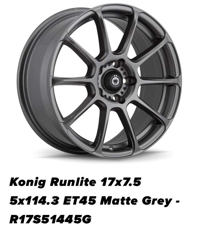 KONIG Runlite 17 Rims $600 Massachusetts Report problemProcessing your request, Please wait....Offensive ContentInvalid OfferSpamOther× Home U.S.A Massachusetts KONIG Runlite 17 Rims This ad listing is expired. Photo Gallery All photos (2) KONIG Runlite 17 Rims × Additional InfoAd TypeI Am OfferingNew/UsedNewDiameter17CountryU.S.AState/ProvinceMassachusettsCityWorcesterZip/Postal Code0161017×7.5 5×114.3 ET45 Matte Grey KONIG Runlite New still in box Kpass15 Listing Owner Member Since: February 26, 2023 Worcester Massachusetts 01610 Sold Ads2x 245/40R18 97V Dunlop SP Sport Maxx GT 600A 7.5/32” Used Tires1x LIKE NEW 235/60R17 102H Goodyear Assurance Comfortred Touring 10.5/32” Used Tires1x 205/65R16 95H Kumho Solus TA31 6.5/32” Used Tire2x 285/45R20 112H Goodyear Eagle Sport All Season RunOnFlat 7.5/32” Used Tires1x 225/50R17 94V Goodyear Assurance Maxlife 8.5/32” Used Tire2020 ram 6 lug 20sMaxxis Razr Mt Tires (Full Set) LT295/60R20BRIDGESTONE BLIZZAK SNOW TIRESLike New Tires!Used Good Year Wrangler DuratracShare Ad