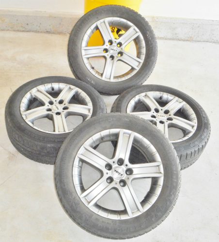 I have 4 winter tires and rims for sale. These tires will fit a Mercedes Benz SLK280 and perhaps other cars as well. Two of the tires are 205/55R16 and the other two are 225/50R16. The tires are made by Continental and the rims by Rial. I also have the lug bolts. The tires are in very good condition. Please send email to central.nj.tires at gmail dot com.