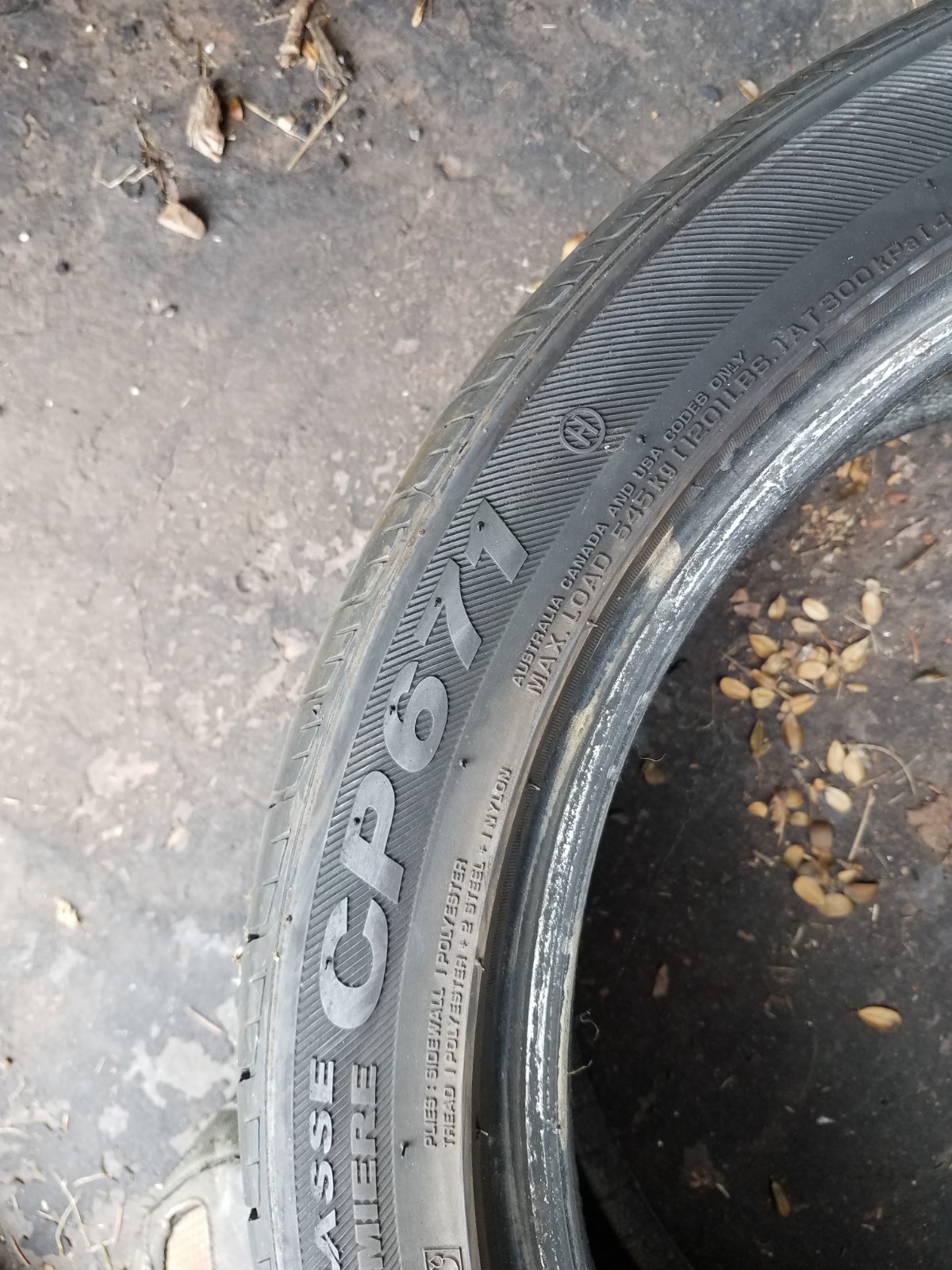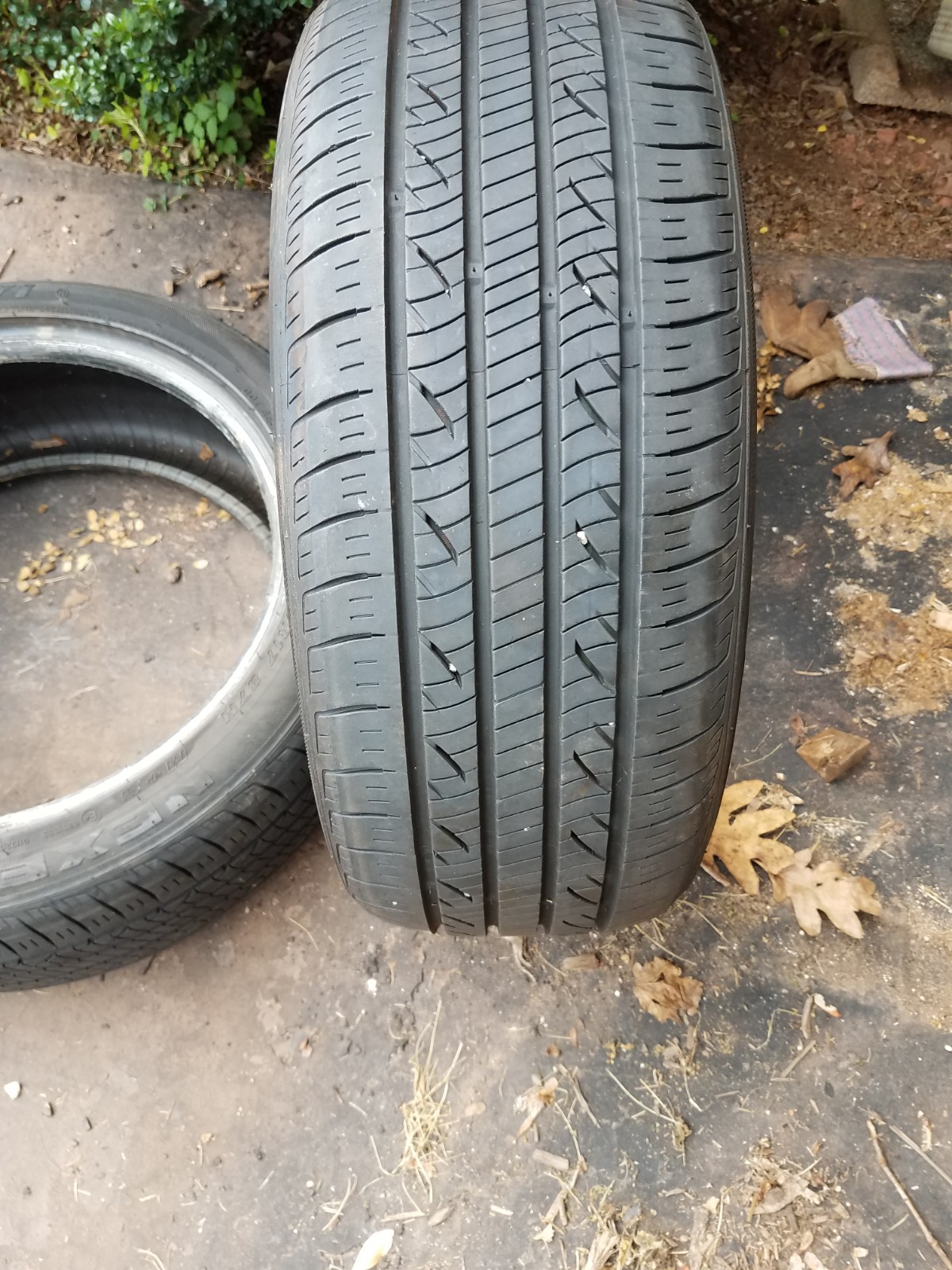 Two, used 17 inch Nexen (CP671) tires. No dry rot, even wear, & adequate tread. Saved these two tires when all four tires on my AWD vehicle were replaced.