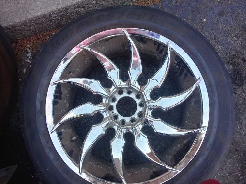 For The $35 You Get The Tire & The Rim. We ONLY Have 3 Tires & 3 Matching Rims, Not All 4. The Rims And Tires Are Like New, Very Nice. The Only Flaw Is The Center Caps Are Gone, But They Still Look Sharp! Possibly Willing To Go A Bit Lower If We Can Sell Them Soon! One Of The Tires Are A Bridgestone, I don’t know how to tell anything else about the brand other than it also says Bridgestone Dueler H/T. The Other 2 Tires Are called Continental Cross Contact 305/45 ZR 22s.