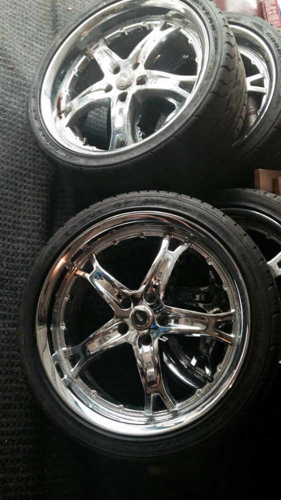 Practically new low profile tires on older rims. They are Goodyear Eagle GT tires. 255/35/HR20 The tires have great tread and were only on for less than 100 miles. The rims are Dale Ernhart Jr. Rims called “Killer Chrome” if you wanna look them up they are not cheap brand new. The rims have some weathering on the inside to the chrome. Spokes are perfect. Selling as a packaged deal. $900Â OBO! Contact # 219-921-9965 Text for more pics or questions!