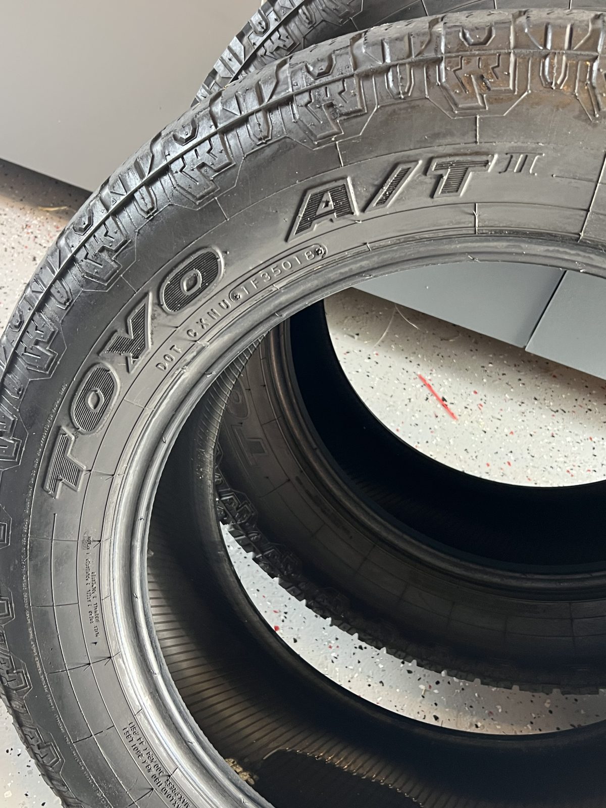 For sale: Set of high-quality Toyo Open Country AT2 Tires with low mileage!