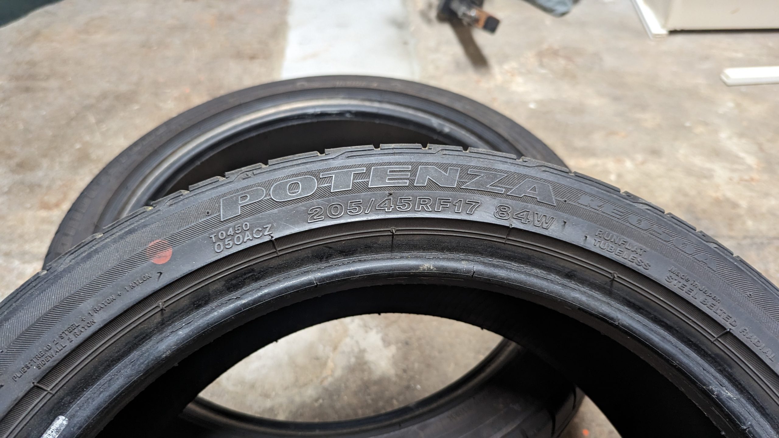 Two used Bridgestone Potenza Run Flat Tires